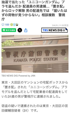 1: 名無し 2026/03/05 00:50:18 ユニコォーン! 2: 名無し 2026/03/05 00:52:00 配達員くん!聞こえているならやめろ! 3: 名無し 2026/03/05 00:54:50 やったんですよ!必死に! 4: 名無し 2026/03/05 00:55:50 父さん…母さん…俺盗るよ! 5: 名無し 2026/03/05 00:57:40 身構えている時ほど荷物は来ないものさ 7: 名無し 2026/03/05 01:01:04 >5ピンポーン! 8: 名無し 2026/03/05 01:02:43 受け取れませぇん! 6: 名無し 2026/03/05 00:59:01 バレちゃうんだなぁコレが!! 11: 名無し 2026/03/05 01:06:29 例え監視カメラつけてないお宅でもお向かいさんが玄関に監視カメラ付けてると大抵バレるからな 12: 名無し 2026/03/05 01:06:43 プレバン商品名わざわざ書かなきいいのに 13: 名無し 2026/03/05 01:24:33 専用のボックスとか備えておかないと置き配も怖い世の中か 14: 名無し 2026/03/05 01:26:03 >13配達員が盗んでんだから利用者側での対策のしようがなくない? 18: 名無し 2026/03/05 01:33:11 ボスジャンとは違って発覚するだけまだまし…でもねえな 21: 名無し 2026/03/05 01:35:13 置き配なんか人の善意に頼ったシステムだからな 22: 名無し 2026/03/05 01:35:50 配達員がやってるから何も信用できない 23: 名無し 2026/03/05 01:36:06 プラモデルでいいのにどうして見出しに「ユニコーンガンダム」としっかり 24: 名無し 2026/03/05 01:37:47 ラプラスの箱(梱包) 26: 名無し 2026/03/05 01:42:41 中身分かる荷物の方が少数だと思うから色々と盗んでるんじゃないかこれ 27: 名無し 2026/03/05 01:43:12 >26そう書いてるだろ 28: 名無し 2026/03/05 01:48:32 過ちを気にやむことはないただ認めて次の糧にすればいいそれが配達員の特権だ 38: 名無し 2026/03/05 02:41:58 配達員のパクリってしっかり逮捕されるんだ 39: 名無し 2026/03/05 02:49:37 >38基本的にどの会社もどの便で付いてこの日配達予定でその時間持ち出したのはこの人で…って追跡してるからバレないわけがない 46: 名無し 2026/03/05 04:13:55 >38むしろなんでバレないとおもった… 40: 名無し 2026/03/05 02:52:07 今はGPSで配達員がどこにいるか客側も確認できたりする時代だからな… 50: 名無し 2026/03/05 04:21:47 何年もずっとやってて1件だけなら会社側の不備って可能性あるだろうけどそいつの配達だけ頻繁だったらな… 9: 名無し 2026/03/05 01:05:44 これユニコーン戻って来る? 19: 名無し 2026/03/05 01:33:40 ガンダムって盗まれてからスタートみたいなとこ有るじゃん? 20: 名無し 2026/03/05 01:34:53 ガンダムは盗まれるモノだから… 30: 名無し 2026/03/05 01:50:21 >20黒く塗られそう 57: 名無し 2026/03/05 06:19:22 >30黒い…!ユニコーン…!? 33: 名無し 2026/03/05 02:04:19 ユニコーンガンダムだけなら勝手にどっか行った可能性もあった 54: 名無し 2026/03/05 06:03:16 ガンダム強奪事件とかアニメや小説本編の中だけでいてほしい…