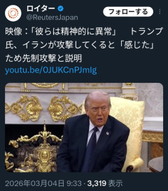 引用元: それでも動く名無し 2026/03/05(木) 10:38:31.41 ID:EU+DX49L0 2: それでも動く名無し 2026/03/05(木) 10:39:25.92 ID:pcKKi5dj0 これ最大級の侮蔑行為やろ 3: それでも動く名無し 2026/03/05(木) 10:39:26.02 ID:Y3abs/pm0 アメリカとかいう悪い中国…