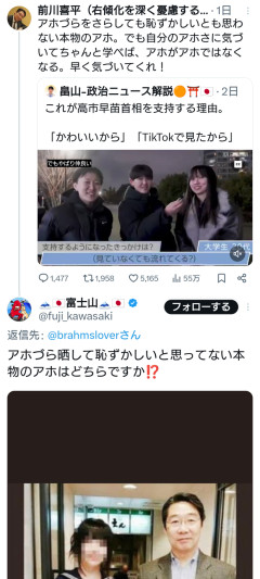 高市総理を支持する若者について前川喜平氏「アホづらをさらしても恥ずかしいとも思わない本物のアホ」