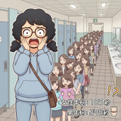 1: ぐれ ★ 2026/03/07(土) 07:43:02 ID:ZevEWGtj9 女性悩ますトイレの行列問題、国が企業や自治体に改善求める指針を公表へ…強制力なく実効性に課題も ※3/6(金) 15:00配信 読売新聞オンライン 多くの女性を悩ませる駅や公共施設などのトイレの行列問題。 国は女性の社会参画を妨げる恐れがあるとして、事業者などに改善を求める指針を3月中に公表する方針だ。 (林理恵) 1・69倍 2月中旬の午前、東京都西部にある駅の女性用トイレ。 通勤・通学の時間帯ということもあり、頻繁に行列が発生していた。 待ちきれずに立ち去る人もいる一方、記者が見ていた約2時間で男性用に列ができることはなかった。 5分ほど並んだ高校1年の女子生徒(16)は「トイレに並ぶのは当たり前で、仕方のないこと。 男の人たちが並ばないのはうらやましいけど……」とあきらめ顔だ。 都内の行政書士、百瀬まなみさん(61)はこの問題を調べ、X(旧ツイッター)で発信を続けている。 きっかけは3年半ほど前、駅のトイレでふと目に入った案内板だった。 男性用は小便器4、個室3なのに、女性用は個室4のみ。 「衣服の上げ下げなど、女性の方が何かと時間がかかるのに、男性用より少ないのはおかしい」と感じた。 以来、全国約1200か所のトイレを回り、男女別の便器数を調べ上げた。 その結果、大小合計の便器数は男性用が女性用の1・69倍あり、女性用では度々行列ができることも確認されたという。 国も問題視 「女性用トイレの利用環境の改善に向けて、対策を推進する」。 国も昨年6月に策定した「骨太の方針2025」にこう明記し、対応に乗り出している。 国土交通省が行列の要因の一つと考えるのは、「女性の社会進出」。 高度経済成長期などに作られた施設の大半は、男性の利用が多いことを前提としていたが、その後、働く女性が急増したため、トイレが不足しているとみる。 同省が駅や空港など11のカテゴリーの施設について行った調査でも、便器の設置数は軒並み男性用の方が多かった。 続きは↓ 女性悩ますトイレの行列問題、国が企業や自治体に改善求める指針を公表へ…強制力なく実効性に課題も(読売新聞オンライン) - Yahoo!ニュース 多くの女性を悩ませる駅や公共施設などのトイレの行列問題。国は女性の社会参画を妨げる恐れがあるとして、事業者などに改善を求める指針を3月中に公表する方針だ。(林理恵)Yahoo!ニュース…