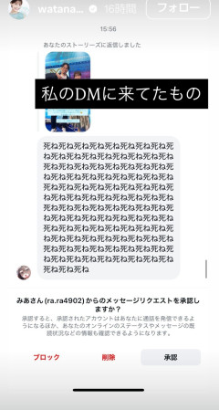 【悲報】渡邉渚さん、インスタに寄せられた誹謗中傷DMを大公開