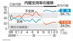 高市内閣支持率64%(3.2ポイント減少)、不支持24% ー 共同通信世論調査