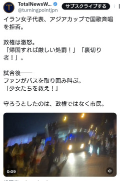 【s区報】イランの女子サッカーチーム、イスラム政権の国歌を歌うことを拒否。政権は激怒wwwww