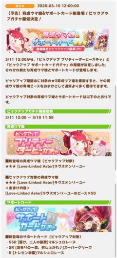723: 名無しのトレーナー 26/03/10(火) 12:00:00 ID:eo.1f.L44 くるぞ 724: 名無しのトレーナー 26/03/10(火) 12:00:00 ID:0t.pf.L9 ピサ+マルシュサポカ予想 726: 名無しのトレーナー 26/03/10(火) 12:00:07 ID:iB.uk.L23 逃げ追込サポカ楽しみやなあ 728: 名無しのトレーナー 26/03/10(火) 12:00:14 ID:FV.kd.L25 新ラヴでした 729: 名無しのトレーナー 26/03/10(火) 12:00:20 ID:d7.pf.L93 ラヴズか 730: 名無しのトレーナー 26/03/10(火) 12:00:27 ID:eo.1f.L44 育成ラヴか サポカマルシュ 731: 名無しのトレーナー 26/03/10(火) 12:00:28 ID:kq.i6.L29 しってた 732: 名無しのトレーナー 26/03/10(火) 12:00:35 ID:0t.pf.L9 ヒヒ^~ン 733: 名無しのトレーナー 26/03/10(火) 12:00:37 ID:iC.uk.L85 サポヤバそう 734: 名無しのトレーナー 26/03/10(火) 12:00:46 ID:d7.pf.L93 マルシュはどんな性能か 735: 名無しのトレーナー 26/03/10(火) 12:00:51 ID:rO.lz.L24 マルシュサポってことは実装は遠ざかったか? 736: 名無しのトレーナー 26/03/10(火) 12:00:52 ID:0W.uk.L20 まぁあとはマルちゃんがスタならいっちは2323 738: 名無しのトレーナー 26/03/10(火) 12:00:59 ID:0r.lz.L26 マルちゃんってダート担当だっけ? 740: 名無しのトレーナー 26/03/10(火) 12:01:09 ID:lw.q3.L23 サポカでもいちゃついてるな 741: 名無しのトレーナー 26/03/10(火) 12:01:12 ID:kN.uk.L21 マルシュサポカかー しかしこれ賢さじゃないとエバヤンと合わせて使ったらむしろメンバー散るやんけ 742: 名無しのトレーナー 26/03/10(火) 12:01:12 ID:9M.pf.L105 つまりシナリンサポカか 743: 名無しのトレーナー 26/03/10(火) 12:01:20 ID:rw.j5.L46 マルシュサポに新衣裳ラヴズか ピサちゃん貯金の猶予が出来たな… 744: 名無しのトレーナー 26/03/10(火) 12:01:26 ID:FV.kd.L25 ワイがサイゲならマルシュは汎用スタサポにする 745: 名無しのトレーナー 26/03/10(火) 12:01:31 ID:eo.1f.L44 お前らがマルシュ完凸させたらワイが借りられる 746: 名無しのトレーナー 26/03/10(火) 12:01:47 ID:0W.uk.L20 わいを挟んだら売れたわ 引用元: 【おんJ】ウマ娘 プリティーダービー部 第12338レース…