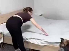 ベッドメイクを邪魔する旦那さん。 奥さん、これで やっちまいましょうぜ! 気が利くワンコはこんな感じ……