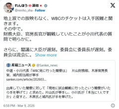 蓮舫「大臣がWBC観戦!?庶民は地上波で見れないしチケットも取れないんだぞ!」
