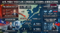 1: 名無し 2026/03/10(火) 21:12:45.38 ID:wR9vK3mP0 台湾の林佳竜外交部長(外相)は10日、中国の王毅外相が台湾問題への日本介入をけん制したことに対し、「台日は価値観を共有し、台湾海峡安定のために力を合わせている」と反論しました。 外交部は、卓栄泰行政院長(首相)が7日に日本を訪問したことも正当な行為であると強調しています。 林氏は声明で「台湾は主権独立国家だ」と主張し、中華人民共和国が台湾を統治したことはなく、互いに隷属していないのは客観的な事実であると指摘しました。 共同通信 ■要約 ・台湾の林外相が中国の王毅外相による対日けん制に反論 ・台日は自由や民主主義などの価値観を共有するパートナーと強調 ・卓行政院長の訪日を正当な行為であるとの立場を表明 ・台湾は主権独立国家であり中国に隷属していない事実に言及 「物価」←これって高い方がいいの低い方がいいの? 【速報】 中国・王毅外相 「現在の戦争は本来起こるべきではなく、誰の利益にもならないものだ」「当面の最優先は停戦である」 【画像】 アメリカのジム、限界突破wwwwwww…