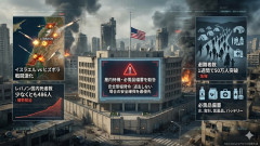 1: 名無し 2026/03/11(水) 06:40:12.34 ID:zG9uN2mH0 ベイルートの米国大使館は、レバノン在住の米国人に対し、退去手段を利用しない場合は「屋内待機」の準備を整えるよう安全警報を発令しました 。 大使館は、自宅や安全な建物内での場所確保とともに、食料、水、医薬品といった必需品の備蓄を強く助言しています 。 レバノン政府の発表によれば、この1週間のイスラエルとヒズボラの戦闘により50万人以上が避難を余儀なくされ、少なくとも486人が死亡するなど、情勢が極めて悪化しています 。 Al Jazeera ■要約 ・ベイルートの米大使館がレバノン在住者に屋内待機と必需品の備蓄を勧告 ・退去しない選択をした場合の安全確保を優先するよう安全警報を発令 ・イスラエルとヒズボラの戦闘激化により1週間で避難者が50万人を突破 ・レバノン国内での死者数が少なくとも486人に達し情勢緊迫が続く 「物価」←これって高い方がいいの低い方がいいの? 【速報】 中国・王毅外相 「現在の戦争は本来起こるべきではなく、誰の利益にもならないものだ」「当面の最優先は停戦である」 【画像】 アメリカのジム、限界突破wwwwwww…