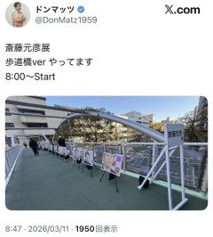しばき隊、なぜか歩道橋で斎藤元彦知事の写真展を開始