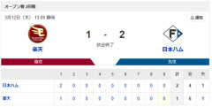 【楽天vs.日本ハム オープン戦】1(中)矢澤宏太 2(一)吉田賢吾 3(指)レイエス 4(三)郡司裕也 13:00〜