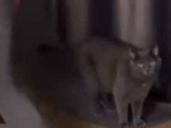 映像を見ながら エクササイズを始めるお姉さん。 少しだけ付き合うかニャ。 やってきた猫さんはこんな感じ……