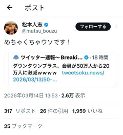 【速報】松本人志さん、Xで事件以降初めてポストwwwwwwww