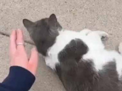 散歩の途中で出会った猫さん。 なでなで♪ 契約、成立です……