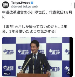 1:2026/03/14(土) 19:11:52.36 ID:3P7eKyhA0中道改革連合の小川淳也氏、代表就任1ヵ月に 「まだ1ヵ月しか経ってないのかと… 2年分、3年分働いたような気がする」 pic.twitter.com/ZeXOxotl9z— Tokyo.Tweet (@tweet_tokyo_web) March 14, 2026転載元スレッド:…