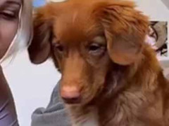 お母さんが木を引きずっていた。これはお散歩カートかな? → 子犬の散歩はこんなスタイルです…