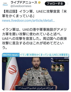 イラン軍、UAEに攻撃宣言「米軍をかくまっている」