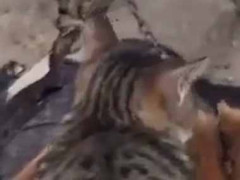 子犬たちが猫にじゃれていた。ちょ、おま! → 子犬たち、やりすぎです…