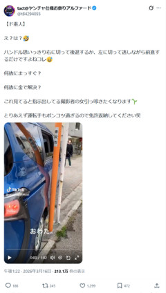 1: 2026/03/16(月) 18:46:10.20 【ド素人】え?は?🤣ハンドル思いっきり右に切って後退するか、左に切って逃しながら前進するだけですよねコレ😅何故にまっすぐ?何故に金で解決?これ見てると指示出してる撮影者の女引っ叩きたくなります🌱とりあえず運転手もポンコツ過ぎるので免許返納してください笑 pic.twitter.com/9lB2tcaabM— tact@ヤンチャ仕様お祭りアルファード (@t84294055) March 16, 2026 ※関連記事 【画像】この漫画の「ダメ人間」と付き合っている彼女の話、少し怖くて草wwwww…