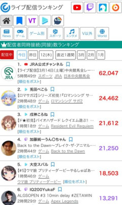 1: 名無しさん@実況で競馬板アウト 2026/03/14(土) 17:43:11.04 ID:zfHC6NVu0 今日の同接ランキングで人気配信者に圧倒的な差をつけた模様 134: 名無しさん@実況で競馬板アウト 2026/03/15(日) 13:04:19.37 ID:vTDJFM6X0 >>1 初日いきなり 10万人大台突破 土曜G2G3無し 5: 名無しさん@実況で競馬板アウト 2026/03/14(土) 17:48:13.20 ID:9zLtIrkM0 競馬また勝ったのか 6: 名無しさん@実況で競馬板アウト 2026/03/14(土) 17:50:37.86 ID:1egnkXhE0 これもう国民的スポーツだろ 11: 名無しさん@実況で競馬板アウト 2026/03/14(土) 17:59:19.64 ID:1zTCHaUG0 ダブルスコア以上w 26: 名無しさん@実況で競馬板アウト 2026/03/14(土) 18:16:40.15 ID:0UJhw3gQ0 まだ初日だし春のG1前半で周知が進めばダービーの頃にはとんでもない数字叩き出すんじゃね 27: 名無しさん@実況で競馬板アウト 2026/03/14(土) 18:27:32.60 ID:wDYtexOo0 ギャン中国家の末路だよ… 28: 名無しさん@実況で競馬板アウト 2026/03/14(土) 18:33:29.89 ID:EEUFEHpl0 グリチャ契約してたけど解約して良いよな? 71: 名無しさん@実況で競馬板アウト 2026/03/14(土) 21:55:31.13 ID:l75jYgfL0 >>28 マルチじゃないなら継続理由が皆無と言っていいくらい 29: 名無しさん@実況で競馬板アウト 2026/03/14(土) 18:43:49.63 ID:zKctP+Mq0 中京とかやらんのにやってしまった 本当依存症気味の人は注意したほうがいい 31: 名無しさん@実況で競馬板アウト 2026/03/14(土) 18:45:30.61 ID:r8Rb5EWc0 有馬記念は同接30万くらい行きそうだな 34: 名無しさん@実況で競馬板アウト 2026/03/14(土) 19:09:13.13 ID:3mGEEwNR0 戻って見れないとかアーカイブなしはさすがに課金勢との住み分けって感じ? 45: 名無しさん@実況で競馬板アウト 2026/03/14(土) 20:23:04.13 ID:iPAiBR550 JRAではないけど有馬の抽選会は同接17万くらいいったから 有馬記念なら20万くらい出てもおかしくない 48: 名無しさん@実況で競馬板アウト 2026/03/14(土) 20:28:17.43 ID:8j5rmBlZ0 >>45 抽せん会17万なら瞬間30万は行くやろ 51: 名無しさん@実況で競馬板アウト 2026/03/14(土) 20:37:16.03 ID:kz+W6NBQ0 もう毎週末の日中にJRAに勝てる配信者いねえだろしかも重賞すらやってなくてこれだからな 60: 名無しさん@実況で競馬板アウト 2026/03/14(土) 21:20:38.91 ID:xuVufUb70 もしかして競馬って覇権コンテンツか? 73: 名無しさん@実況で競馬板アウト 2026/03/14(土) 22:05:58.45 ID:bcZpQHbx0 有馬とかやばい事になりそう 82: 名無しさん@実況で競馬板アウト 2026/03/14(土) 23:31:25.13 ID:FZMy25DR0 有馬はまた別の雰囲気もあるしな 一般人はテレビで見るほうが多いんじゃないか 85: 名無しさん@実況で競馬板アウト 2026/03/15(日) 00:20:36.54 ID:vuarVCSJ0 >>82 外出先でもどこでもスマホで見れるから 有馬は相当な数字になりそう 93: 名無しさん@実況で競馬板アウト 2026/03/15(日) 03:58:06.24 ID:u1XIb/ex0 平場でこれとか 完全にフリーザ様状態すぎる 99: 名無しさん@実況で競馬板アウト 2026/03/15(日) 06:12:18.81 ID:QLALX2mf0 思ったより圧倒的で草 105: 名無しさん@実況で競馬板アウト 2026/03/15(日) 08:04:27.03 ID:vmtp0jX40 G1の時なんか凄いだろうな 113: 名無しさん@実況で競馬板アウト 2026/03/15(日) 09:10:49.07 ID:nvGu/uH30 チャンネル登録者数が1日で6万ぐらい増えたらしいな 135: 名無しさん@実況で競馬板アウト 2026/03/15(日) 13:11:30.95 ID:Eco04mO00 これもしかしてアーカイブで後からまるまる見れたりもすんの? 136: 名無しさん@実況で競馬板アウト 2026/03/15(日) 13:25:21.88 ID:gqUZhu7v0 >>135 アーカイブはないよ ちなみにシークも出来ない 139: 名無しさん@実況で競馬板アウト 2026/03/15(日) 15:34:18.33 ID:kF8rrsQA0 こりゃ現契約者の解約がそこそこ入りそうだな 公式の無料垂れ流しが同接10万は大体それくらいの人が新規契約しない事を表している 141: 名無しさん@実況で競馬板アウト 2026/03/15(日) 15:58:29.77 ID:M63grUhE0 今日JRA配信14万いってたわ 144: 名無しさん@実況で競馬板アウト 2026/03/15(日) 16:02:10.97 ID:oE1PPRdW0 ダービーや有馬みたいな大レースになると回線大丈夫なのだろうか 145: 名無しさん@実況で競馬板アウト 2026/03/15(日) 16:04:44.99 ID:OLnEwcGd0 >>144 一応youtubeはNintendoDirectで300万ぐらいまでは対応した実績はある 173: 名無しさん@実況で競馬板アウト 2026/03/16(月) 16:57:54.00 ID:VCNymhHe0 ダービーの日の同接がどうなるか今から楽しみだよ グッドスマイルカンパニー[GOOD SMILE COMPANY] ねんどろいど ウマ娘 プリティーダービー スーパークリーク ノンスケール プラスチック製 塗装済み可動フィギュア posted with AmaQuick at 2026.03.16 グッドスマイルカンパニー(GOOD SMILE COMPANY) () ¥6,955 Amazon.co.jpで詳細を見る 引用元:…