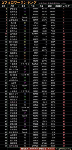 【速報】AKB48 年間フォロワー増加数ランキング 1位伊藤百花 2位佐藤綺星 3位八木愛月【星月花】