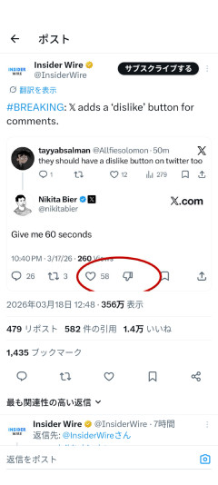 1: ななしさん@発達中 2026/03/19(木) 08:32:09.99 ID:PraIvDxkM 【速報】𝕏、「低評価(dislike)」ボタンを導入か pic.twitter.com/Hk4UM5EupO— Mr.₿itcoin (@coinspace_) March 18, 2026…