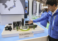 トヨタ自動車は17日、水を電気分解して水素を製造する水電解装置を2029年にも量産すると発表した。水素を活用した脱炭素化を推進する。東京ビッグサイト(東京都江東区)で同日始まった「水素・燃料電池展」で、愛知県豊田市の本社工場に導入した実証機の模型を初出展した。実証機は5月ごろ本格稼働する。 装置はプラント大手の千代田化工建設と共同開発した。水素は1時間当たり96キロ製造でき、デンソー福島(福島県田村市)の工場で導入した従来型の12倍の量となる。つくった水素は自動車部品や燃料電池の生産、研究開発に生かすという。 国内向けの量産に加え、海外向けに1時間当たり約400キロの水素を製造できる大規模装置の展開も目指す。…