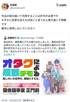 1: 2026/03/20(金) 00:11:09.43 高橋くん主催の「オタクによる反戦デモ」の告知ポスターに関して、機動戦士ガンダムシリーズを手がけるアニメ監督から直々に「勝手に使用しないでください」と声が上がった。 pic.twitter.com/tSzr29jmuu— フォックス・コン (@yominokuni140) March 19, 2026 告知画像に配慮に欠ける表現があったため、一旦、投稿を削除しました。告知は改めて行います。よろしくお願いいたします。オタクによる反戦デモ実行委員会— オタクによる反戦デモ公式 (@otakudemo2026) March 19, 2026 ※関連記事 【悲報】「家賃高すぎ。何とかしろ!」新宿区で200人がデモw…