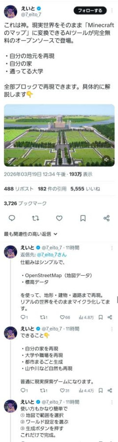 X民「マインクラフトで生成AIを使って簡単に現実の街を再現できるようになりました!」←炎上する
