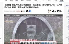 1 : 【速報】新名神高速の多重衝突・炎上事故、死亡者が6人に 3人は子どもと判明 警察が身元の特定進める 三重県亀山市の新名神高速道路で20日未明に発生した多重事故で、警察はこの日午後、死亡者が6人と発表しました。このうち3人が子どもということです。 警察によると、1台の車に乗っていた性別不明の大人とみられる1人、もう1台の車に乗っていた大人の男女2人と性別不明の子ども3人が死亡したということです。 警察は、大型トラックを運転していた広島県安芸高田市の会社員・水谷水都代容疑者(54)を過失運転致死の疑いで現行犯逮捕しました。 事故当時、現場では工事による約1kmの渋滞が発生していて、警察は水谷容疑者の大型トラックが渋滞の車列に突っ込んだとみて、詳しい原因を調べています。…