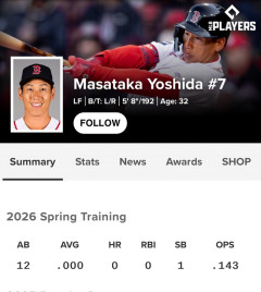 【超絶悲報】レッドソックス吉田正尚さん、オープン戦の打率.000でガチのマジで限界突破