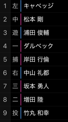 1: それでも動く名無し 2026/03/21(土) 08:43:52.680 ◇プロ野球 オープン戦 巨人 2-1 楽天(20日、東京ドーム) 巨人・阿部慎之助監督が、開幕スタメンの布陣について言及しました。 開幕前ラストとなる楽天との3連戦初戦を迎えた巨人。阿部監督は開幕戦を意識したオーダーで臨んだことを明かしました。 これまでクリーンアップでの起用が多かったキャベッジ選手。この日は「1番・レフト」でスタメン出場し、3打数1安打をマークしました。 起用の意図について、阿部監督は「自由に打たせたい。相手に多少のプレッシャーをかけていきたい」と説明。また欠場が続く、泉口友汰選手について、「3番・ショート」で出場した浦田俊輔選手の位置に入るかと問われ、「そうです」と明言する一幕もありました。 さらに、打撃好調の増田陸選手については、「(スタメンの可能性が)ないわけじゃないので起用しています」と期待。7回、8回に登板した中川皓太投手、田中瑛斗投手には開幕後の必勝リレーを想定。「できるのはいましかないんで、そういうときにやっておこうかなと思いました」と話し、この日好投したリリーフ陣への期待を語りました。 2: それでも動く名無し 2026/03/21(土) 08:44:07.583 昨日のスタメン 3: それでも動く名無し 2026/03/21(土) 08:45:22.035 スタメン確定の松本剛…