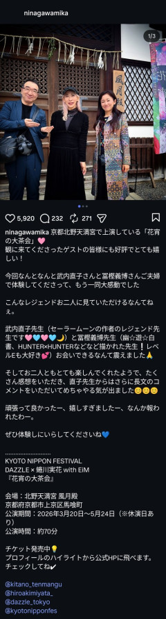 1: 2026/03/22(日) 00:27:40.28 これは期待できるな この投稿をInstagramで見る 蜷川実花(@ninagawamika)がシェアした投稿 ※関連記事 【画像】この漫画の「ダメ人間」と付き合っている彼女の話、少し怖くて草wwwww…