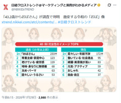 1: 2026/03/22(日) 20:07:53.67 「43.2歳からおばさん」が調査で判明 激変する令和の「おば」像 #日経クロストレンド pic.twitter.com/iFf7SEUzhE— 日経クロストレンド@マーケティングと消費がわかるメディア (@NIKKEIxTREND) January 28, 2026 ※関連記事 【画像】職場の30歳おばさんを、ついに脱がせた結果wwwwwwwwww→!…