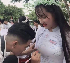 【画像】アオザイ来た女子のお〇ぱいに、ベトナム人さんが落書きしまくってしまうwwwwwwwwww