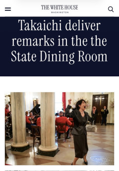【悲報】ホワイトハウスの高市訪米トップ記事の写真wwwwwwww