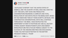 トランプ大統領 イラン発電所への攻撃を5日間延期と表明 「イランと生産的な協議を行った」
