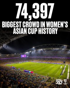 1: 王子 ★ 2026/03/23(月) 12:09:42.16 ID:m+iVlThR9 大会新記録!7万4397人の大観衆で埋まったスタジアムは黄色一色!なでしこは「めちゃアウェーの中の優勝」「日本でもこれくらい入るようになって欲しい」 なでしこジャパン(日本女子代表)の2大会ぶり3度目の優勝で幕を閉じた女子アジアカップ2026。3月21日の決勝(3月21日)は、地元オーストラリアが勝ち上がったこともあり、大会歴代最多記録を更新する7万4397人もの大観衆が詰めかけた。 世界有数の女子サッカー人気国であるオーストラリアは、2023年にニュージーランドと共催した女子ワールドカップで総入場者数197万人という大会新記録を達成。その“熱”は3年経っても変わらず、今大会でもオーストラリア女子代表がフィリピン女子代表を1-0で下した3月1日の開幕戦で早速、大会新となる4万4379人という観衆を記録した。 そしてファイナルでは、シドニー五輪(2000年)のメイン会場としても使用されたアコー・スタジアムに7万4397人が来場。そのほとんどがオーストラリアの応援で、スタンドは黄色に染まった。 なでしこジャパンにとっては“完全アウェー”での試合となったが、浜野まいかのゴラッソ弾で1-0と勝利。歓喜から一夜明け、公式エックス(旧ツイッター)が更新された。 「開催国のオーストラリアと戦ったアジアカップ決勝 多くの人々で埋まったスタジアムは、とてつもない熱気に包まれていました」と綴り、メインスタンド上部から見渡したスタジアム全景の現地映像を公開し、改めてその“熱気”を伝えている。 ■「7万4千人超え!すごいなーー」 大観衆で埋まったスタンドの現地映像に対して、SNS上には次のようなコメントが寄せられた。 ※以下リンク先 引用元:…