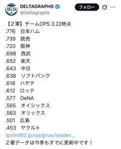 【悲報】広島2軍のチームOPS、ハヤテやオイシックス以下になる