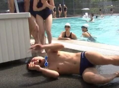 【動画】スク水女子のお〇ぱい触ったオジサン、謎の力で倒れてしまうwwwwww