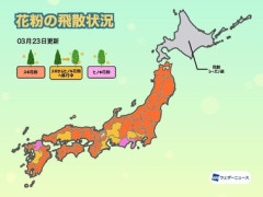 1: 名無し 2026/03/24(火) 12:05:53.23 ID:IzgaoSBZ0花粉シーズンは後半戦へ 西日本〜東日本ではヒノキ花粉が飛散開始 ヒノキが飛び始めた模様…