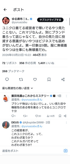 【悲報】有識者「ユニクロ着てる経営者で稼いでるやつ見たことない」