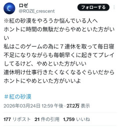 【27万バズ】X「紅の砂漠をやろうとしてる人へ。ホントに時間の無駄だよ」 ←その理由がコレ