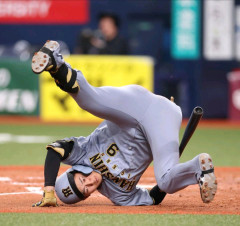 マチャドの156km/hを避けた立石正広くん、ものすごいポーズに
