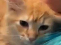 飼い主さんにくっつく子猫ちゃん。 お腹がへったのかな? ニャジラの叫びはこんな感じ……