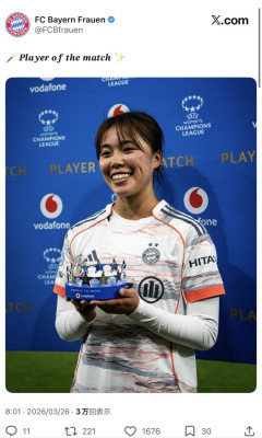 9999: 名無しに人種はない@実況OK女子チャンピオンズリーグ(WCL)準々決勝マンチェスター・ユナイテッド戦で、1ゴール1アシストと試合を支配したバイエルンのなでしこMF谷川萌々子(20)。彼女の「美しすぎる決勝ゴール」に対し、ドイツ、イギリス、アメリカと世界中の主要メディアから「ワールドクラス」と特大の賛辞が送られています!アジアカップ制覇の勢いそのままに無双する20歳の至宝に対する、ネットの反応をまとめました。…
