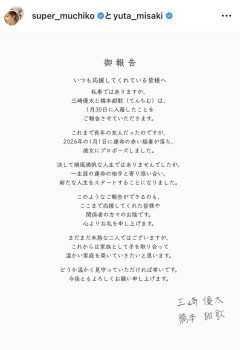 元「青汁王子」三崎優太氏と「てんちむ」が電撃婚!「1月1日に運命の赤い稲妻が落ち…」/全文 元「青汁王子」こと実業家の三崎優太氏(36)と、人気YouTuberの「てんちむ」こと橋本甜歌(32)が28日、それぞれのSNSを更新。1月30日… (出典:日刊スポーツ) 三崎優太 三崎 優太(みさき ゆうた、1989年3月29日 - )は、日本の実業家、YouTuber、タレント。北海道札幌市出身。2007年にアフィリエイト関連会社「メディアハーツ」を創業。2014年以降、青汁のネット通販で成功し、「若手イケメン社長」としてマスコミなどに注目されたことから、青汁王子の名で知… 32キロバイト (3,701 語) - 2026年3月28日 (土) 07:35 橋本甜歌 ENTERTAINMENTを経てフリーランス、ショーダンサーとしては株式会社オフィスキューキューがマネジメント業務を担当している。 夫は「青汁王子」として知られた実業家の三崎優太。 日本人の父と中国人の母との間に中華人民共和国北京市で生まれ、栃木県足利市で育つ。小学1年生のときに芸能活動を開始する。2002年7月、ビデオド… 55キロバイト (6,950 語) - 2026年3月28日 (土) 07:25 (出典 てんちむ(橋本甜歌)グラビア水着画像46枚① | 無料で見れるエロい写真集) 似たもの同士… (出典 元「青汁王子」三崎優太氏と「てんちむ」が電撃婚!「1月1日に運命の赤い稲妻が落ち…」/全文 [ひかり★])1 ひかり ★ :2026/03/28(土) 15:48:06.29 ID:HzEHDPU19 元「青汁王子」こと実業家の三崎優太氏(36)と、人気YouTuberの「てんちむ」こと橋本甜歌(32)が28日、それぞれのSNSを更新。1月30日に結婚したことを発表した。 深紅のバラの花束を抱えたツーショット写真や、左手薬指の結婚指輪の写真なども公開した。 発表全文は以下の通り。 いつも応援してくれている皆様へ 私事ではありますが、 三崎優太と橋本甜歌(てんちむ)は、 1月30日に入籍したことを ご報告させていただきます。 これまで長年の友人だったのですが、 2026年の1月1日に運命の赤い稲妻が落ち、 彼女にプロポーズしました。 決して順風満帆な人生ではありませんでしたが、 一生涯の運命の相手と寄り添い合い、 新たな人生をスタートすることになりました。 このようなご報告ができるのも、 ここまで応援してくれた皆様や 関係者の方々のお陰です。 心よりお礼を申し上げます。 まだまだ未熟な二人ではございますが、 これからは家族として手を取り合って 温かい家庭を築いていきたいと思います。 どうか温かく見守っていただければ幸いです。 今後ともよろしくお願い申し上げます。 三崎優太 橋本甜歌 日刊スポーツ (出典 i.imgur.com) (出典 i.imgur.com) (出典 元「青汁王子」三崎優太氏と「てんちむ」が電撃婚!「1月1日に運命の赤い稲妻が落ち…」/全文 [ひかり★])…