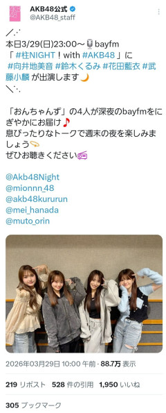 【悲報】本店垢、ラジオの告知しただけで炎上・・・【AKB48のX】