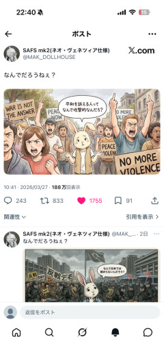 【悲報】X民「『平和を訴える人』に対する違和感を漫画で描きました」