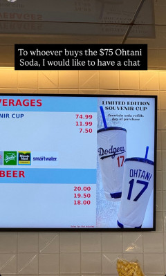 【画像】大谷ソーダ、75ドル(約12,000円)wwwwww