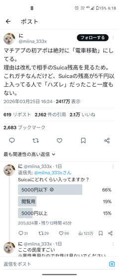 マチアプ女「Suicaに5,000円以上入ってる人漏れなく当たりです」